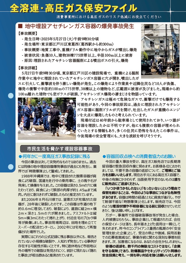 地中埋設アセチレンガス容器事故情報(2025年5月27日)