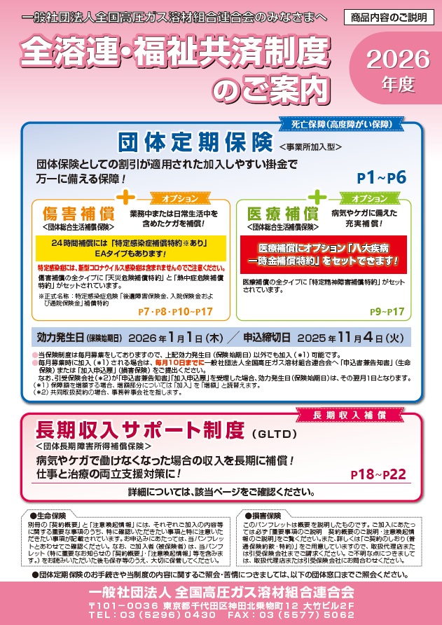 2026年度「全溶連 福祉共済制度(団体定期保険)」の募集を、以下の通り開始いたします。
